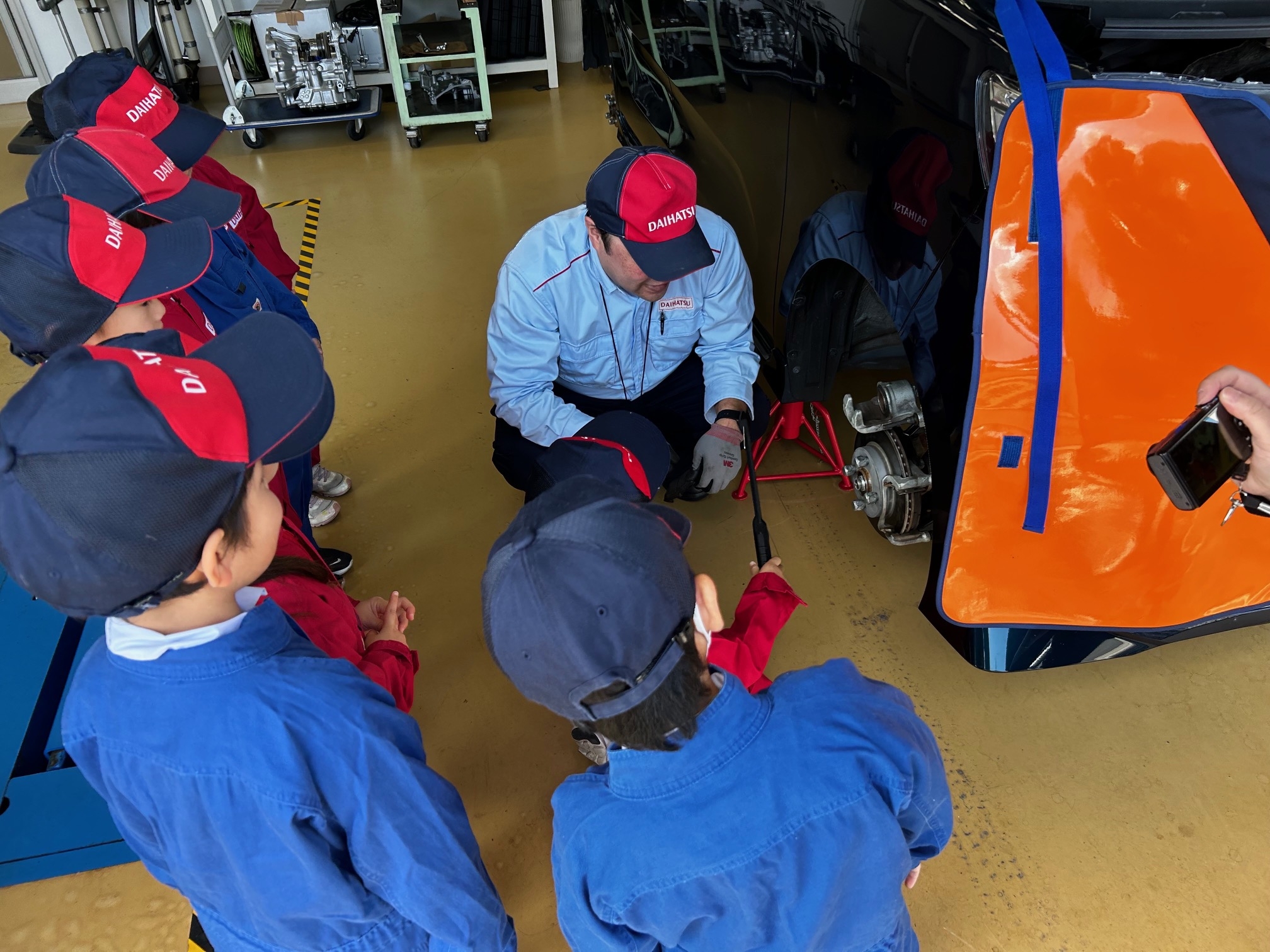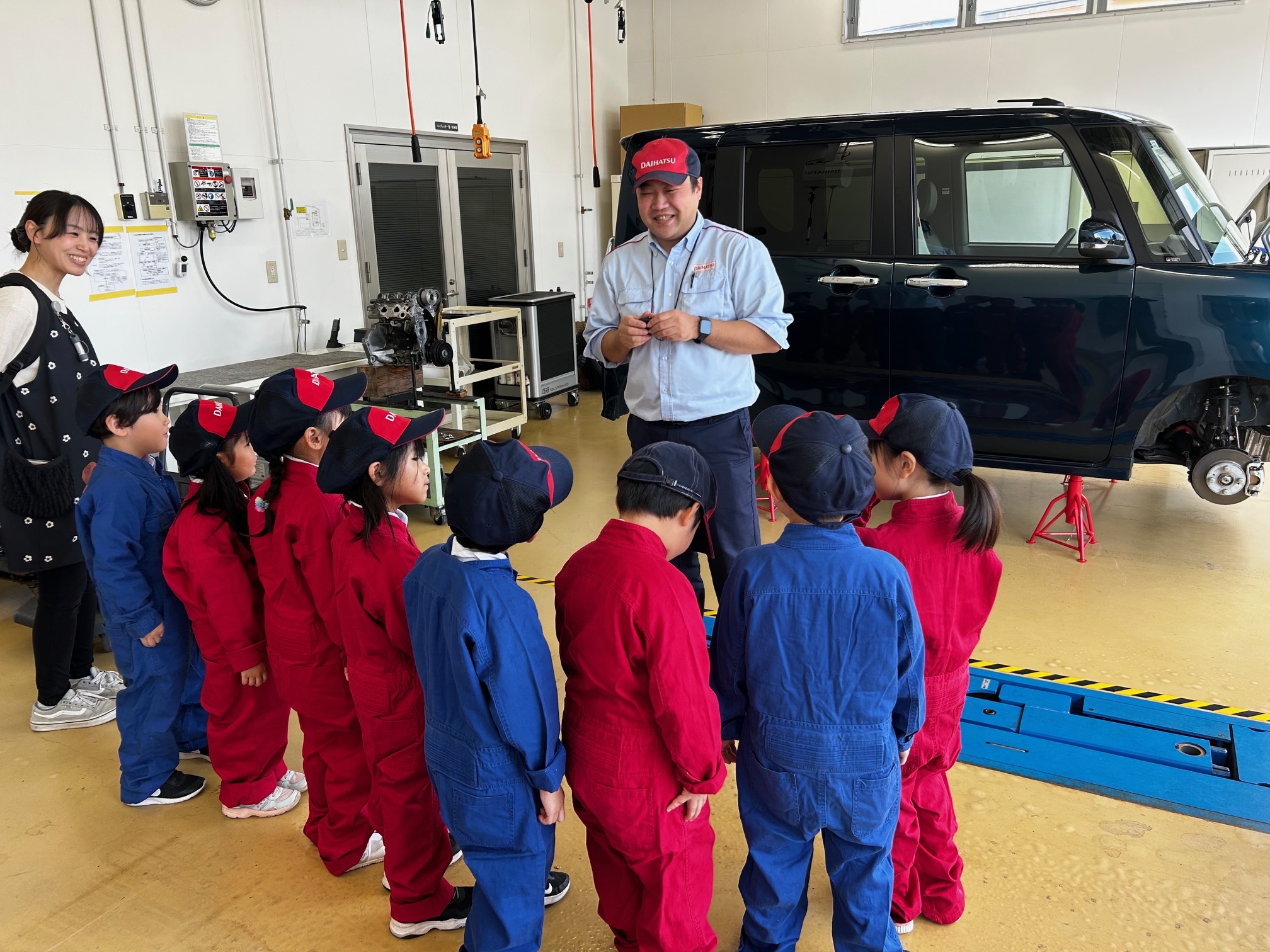 実際の工場でエンジンルームを見たりクイズを出題しました!