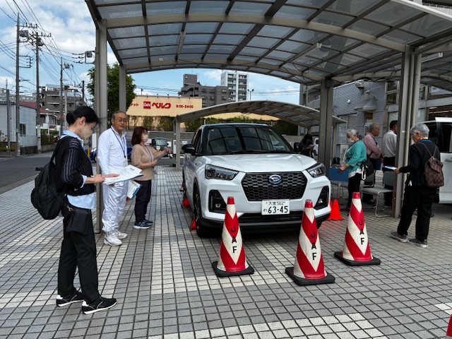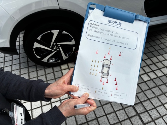 また、日本自動車連盟(JAF)様のご協力のもと、正しい運転姿勢や死角の確認を実施。