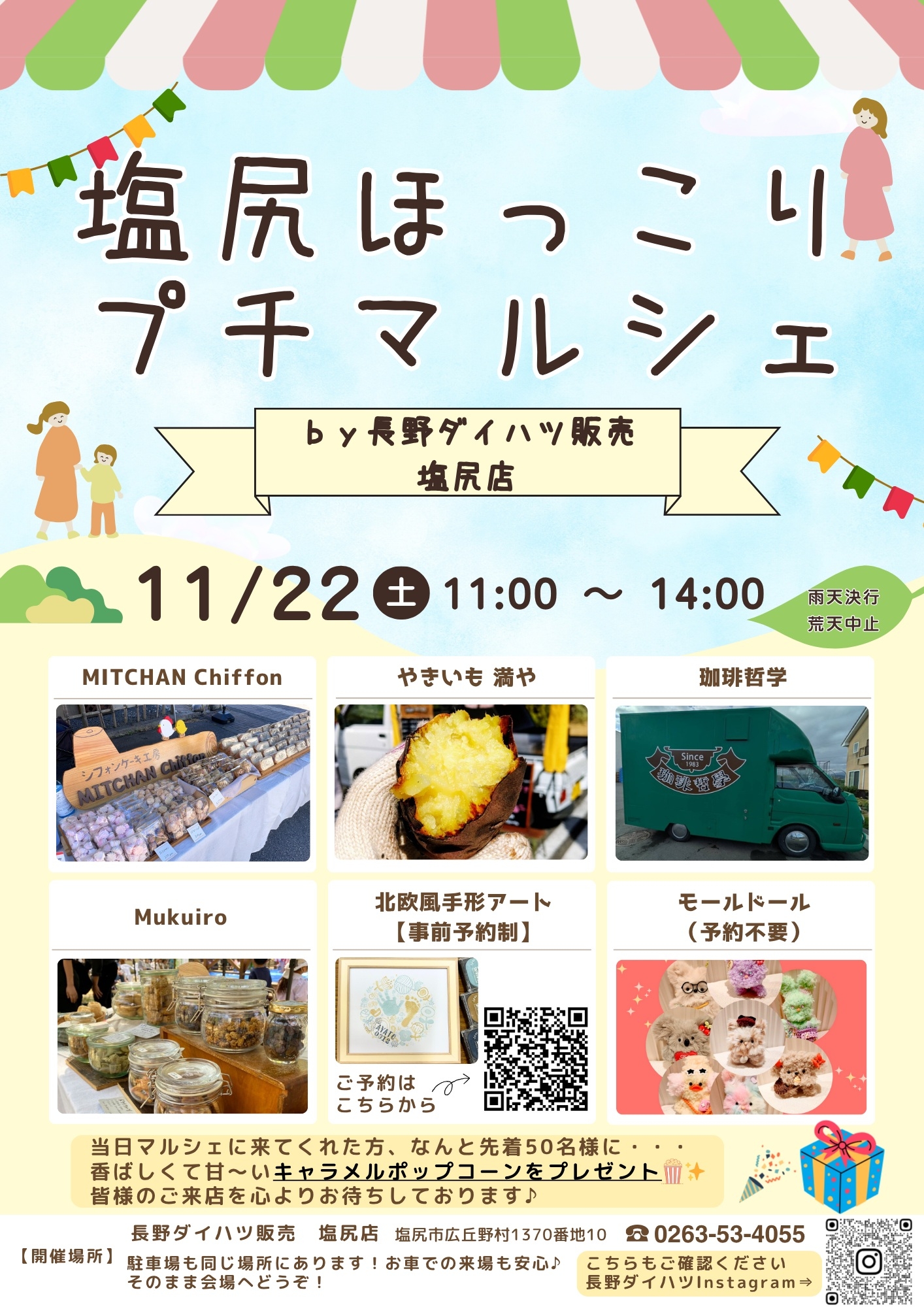 2025年11月22日(土)、塩尻店にて11:00~14:00の時間帯で