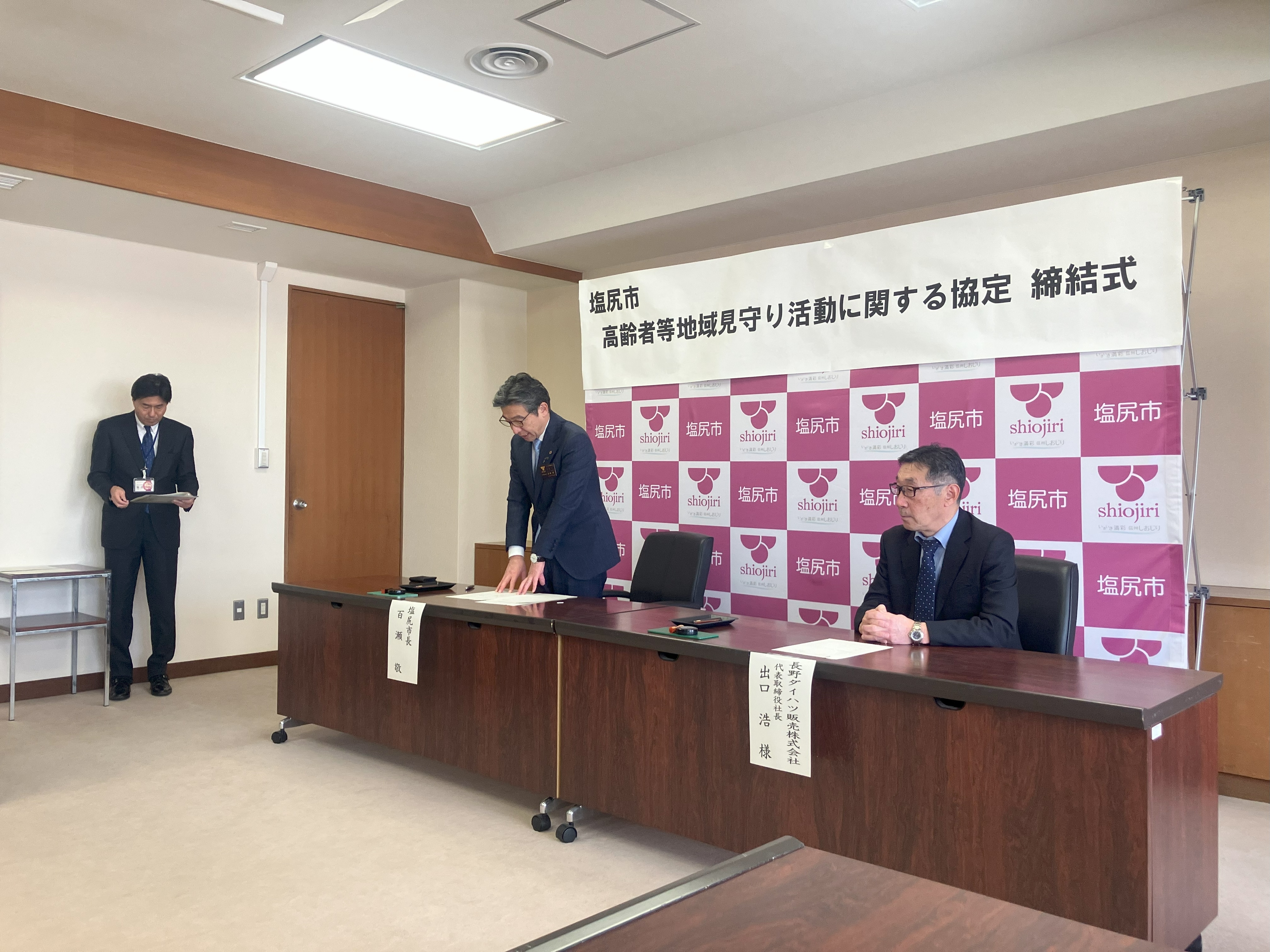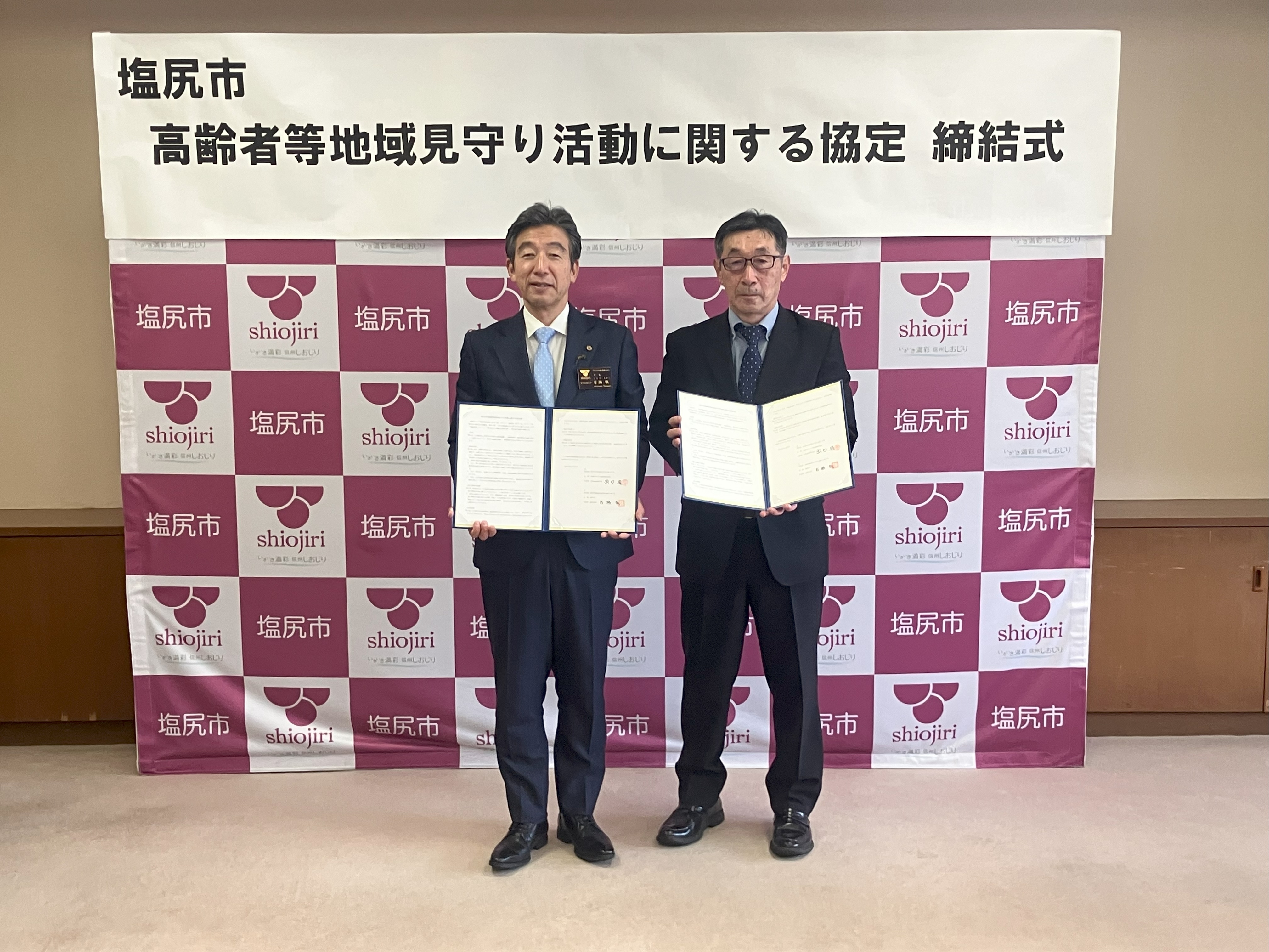 本協定は、当社が行う点検・整備、車両販売、アフターサービスなどの日常業務を通じて得た地域の中での「気づき」を、必要に応じて塩尻市と共有し、高齢者等を地域全体で見守る体制づくりに協力することを目的としています。