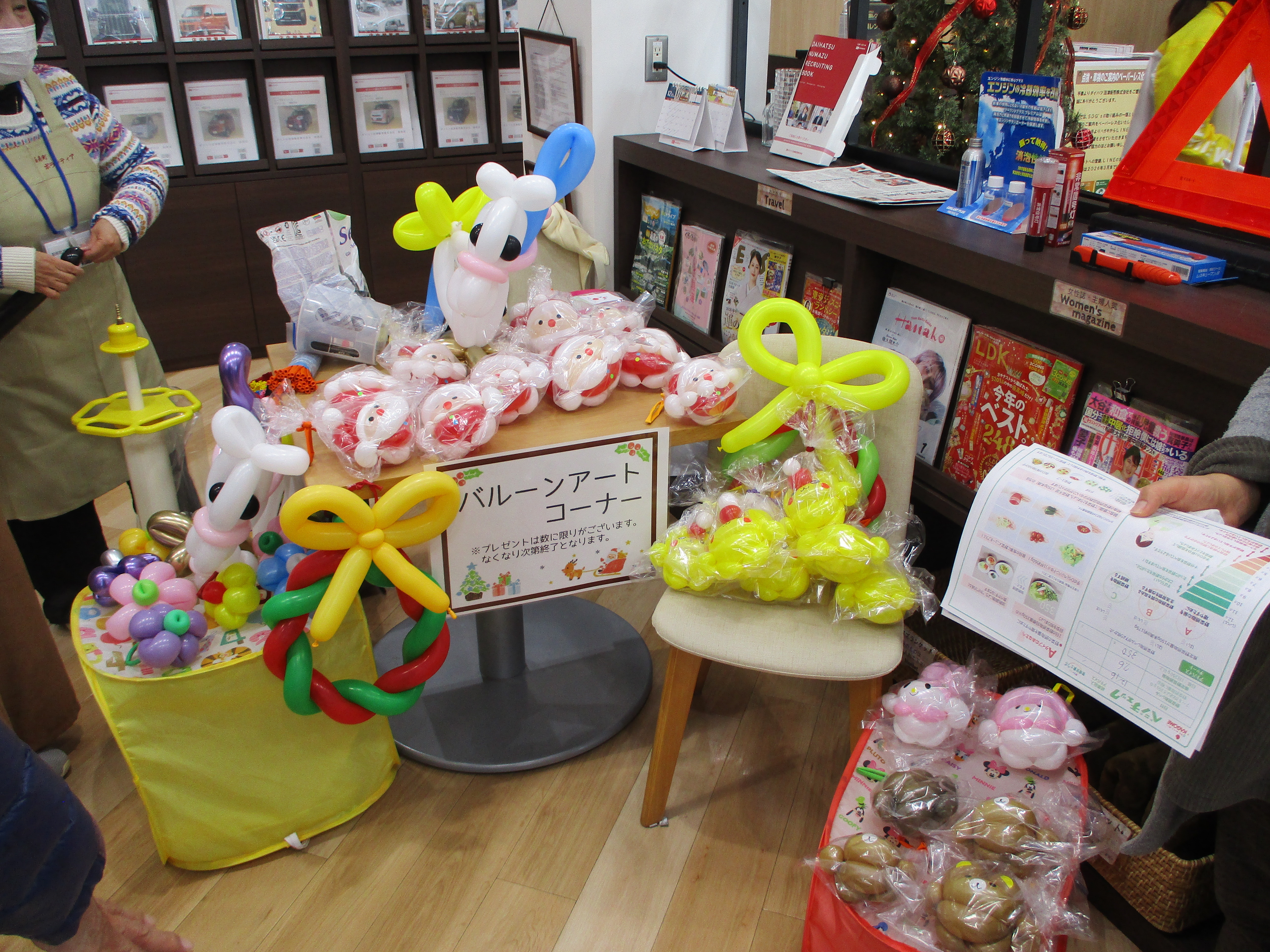 また人気の『バルーンアートゆうこりん』さんもたくさんの種類のバルーンアートで子供たちを魅了していました。クリスマスに合わせて新作のサンタさんが並び、あまりのかわいさに子供から大人まで大人気でした。