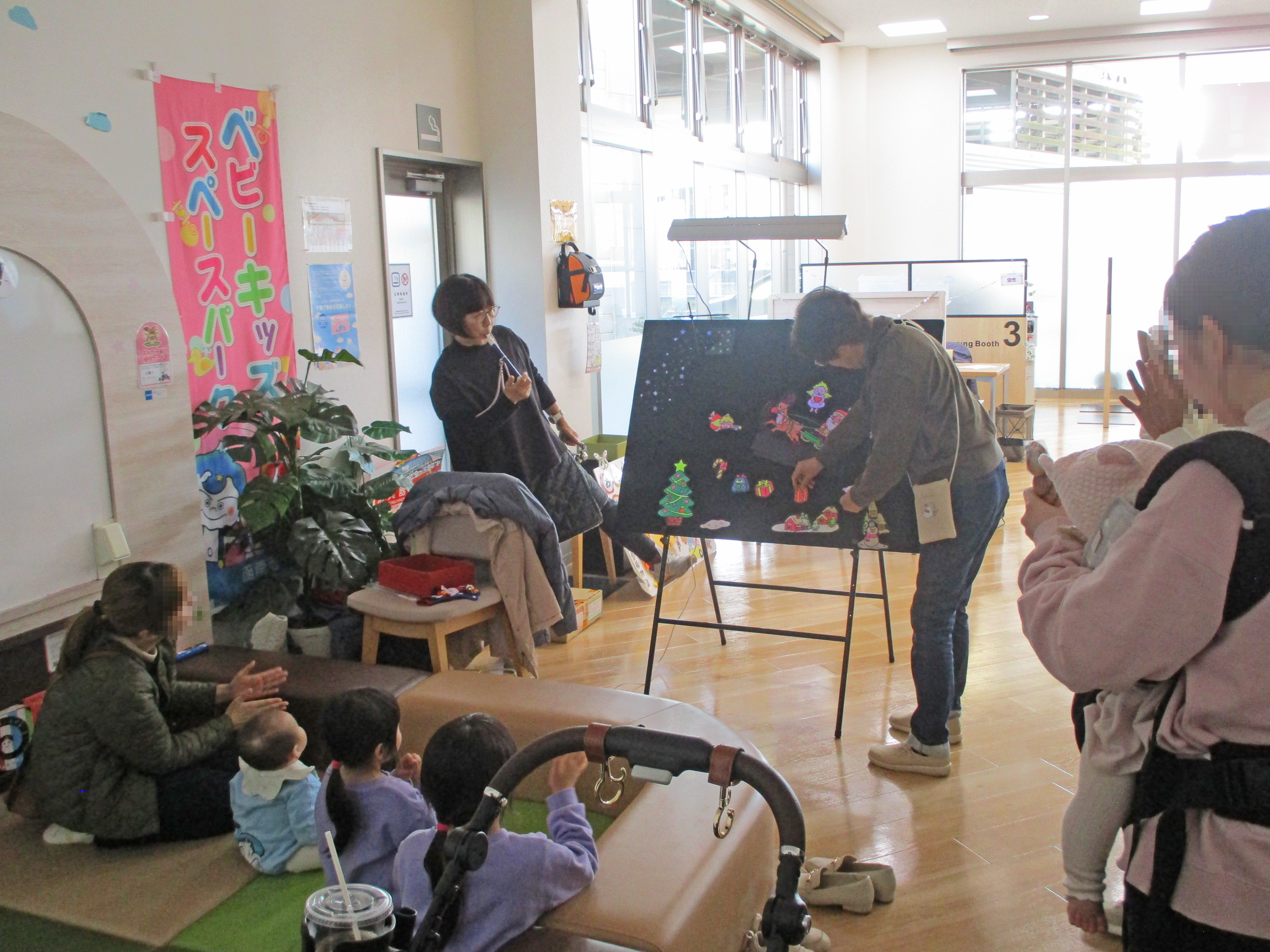 『函南おもちゃ図書館』のボランティアさんたちが行う「手遊びやおはなし」のブースでは子供たちが歌に合わせて体を揺らしたり、手拍子をしてブースのみんなで一緒に楽しんでいました。