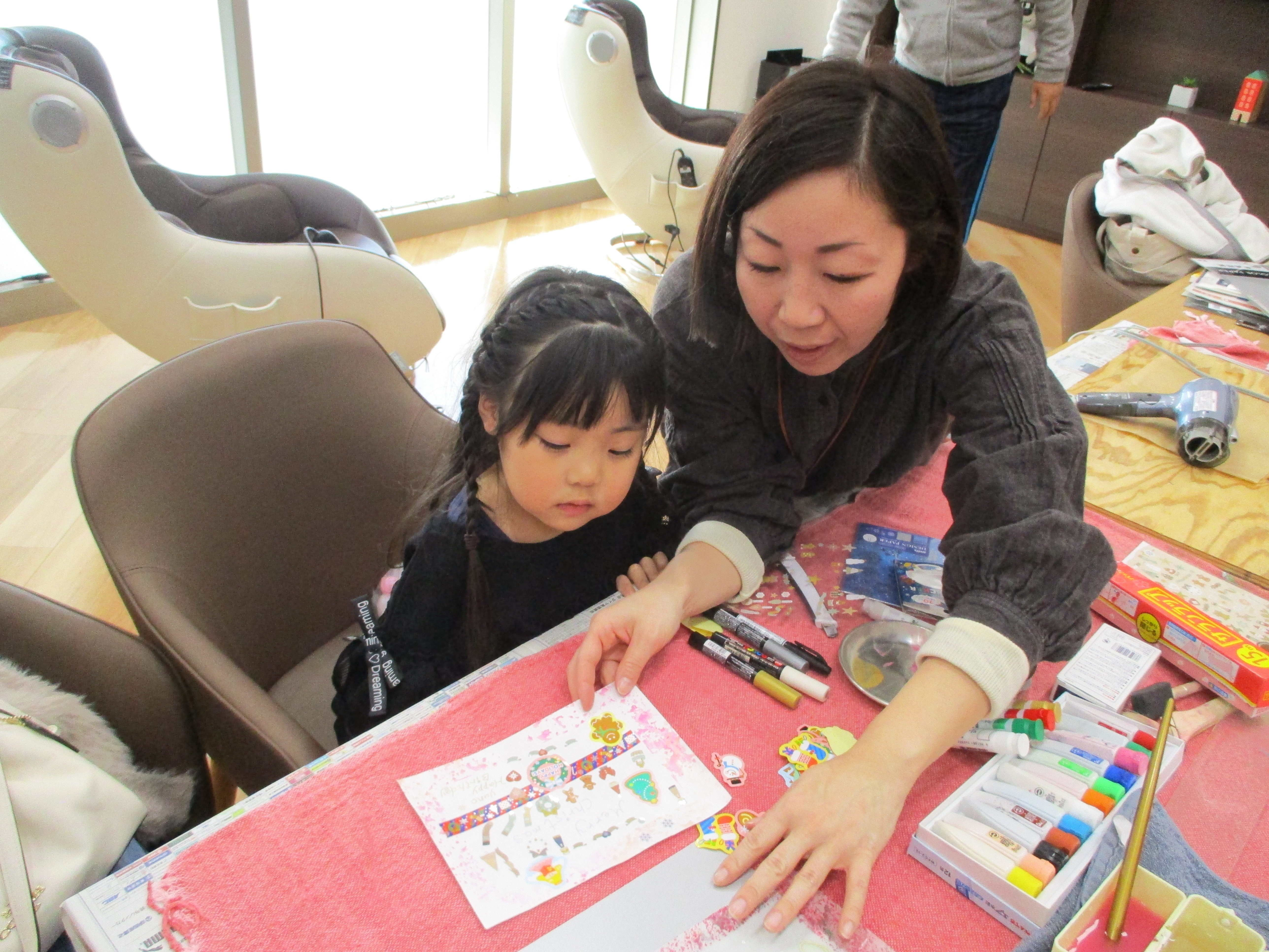 ワークショップも開催し、『蝋引紙クリスマスカードづくり』を行いました。オリジナルのカードづくりにお子様も楽しんで参加いただきました。