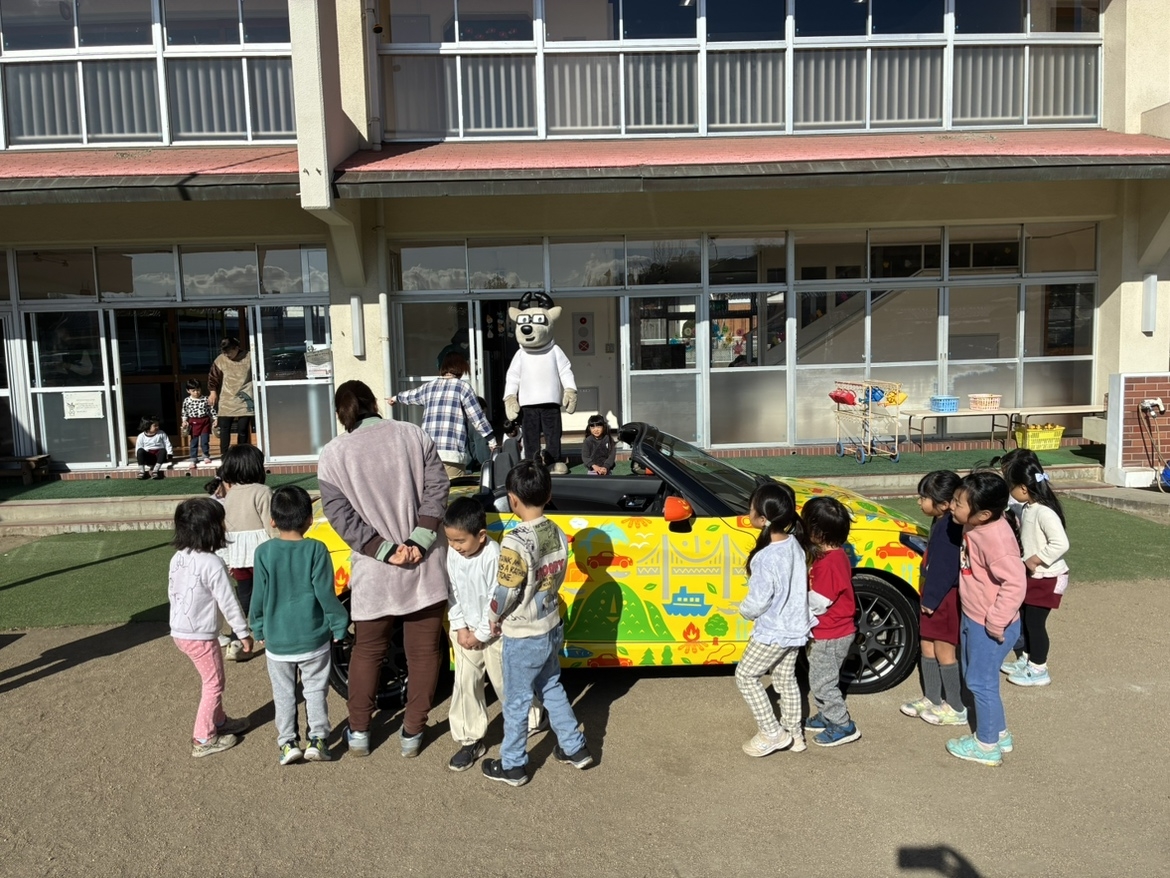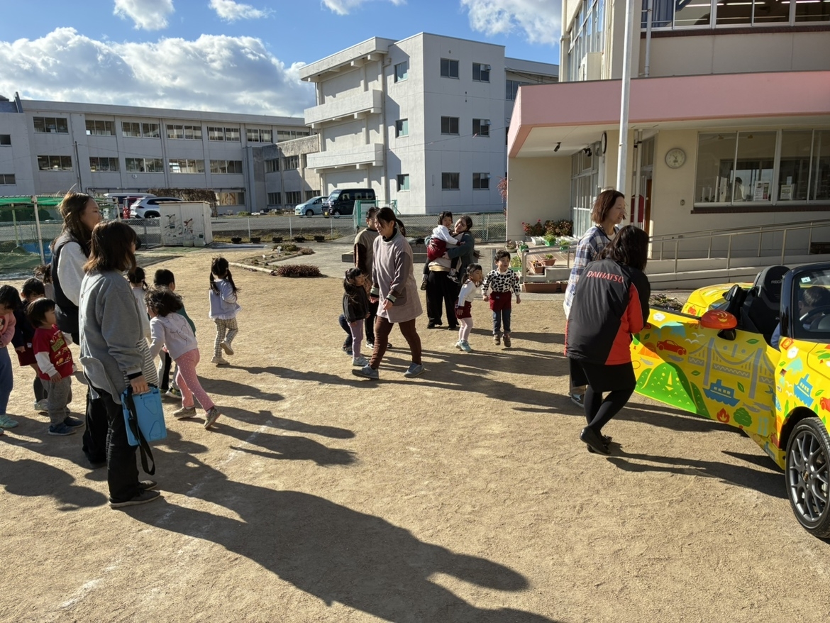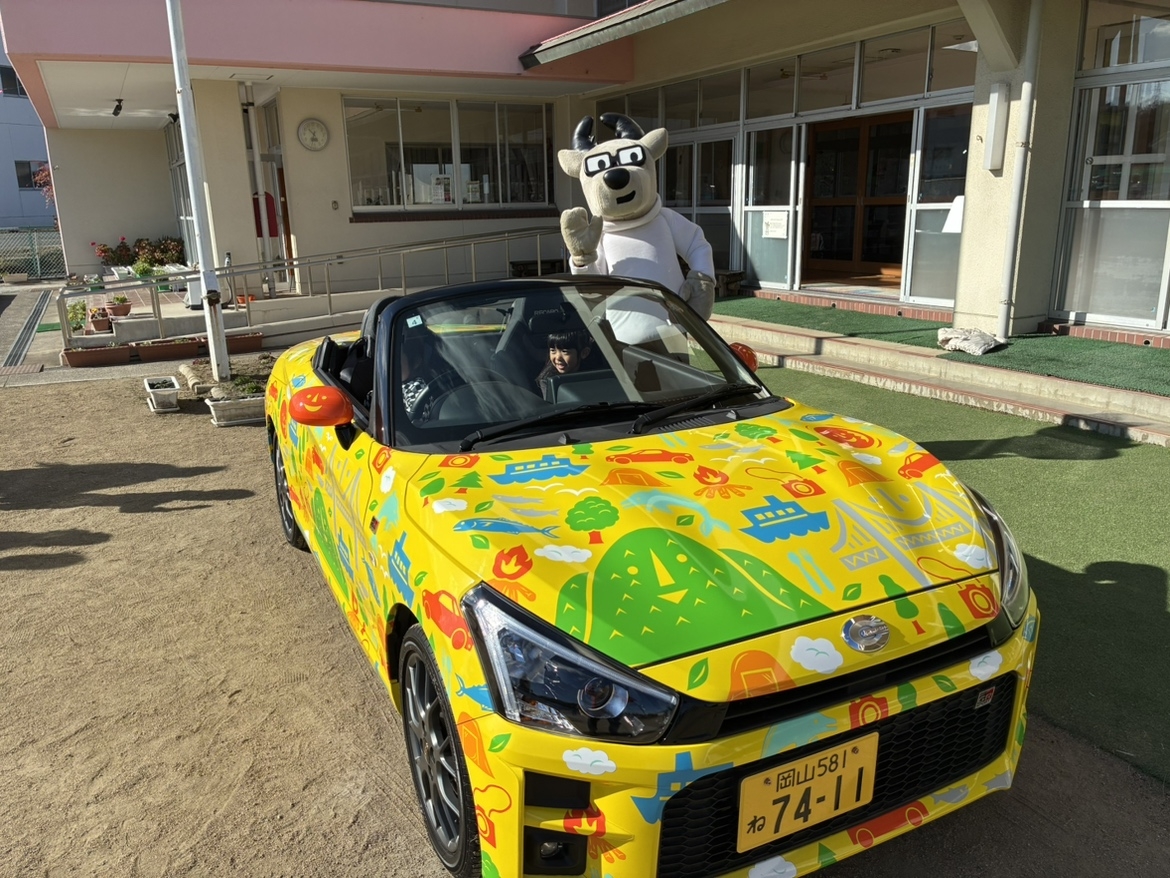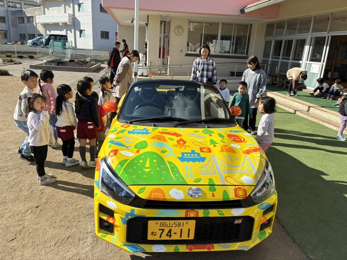 お次は、園庭に停めた「幸せコペン」で写真を撮ります。