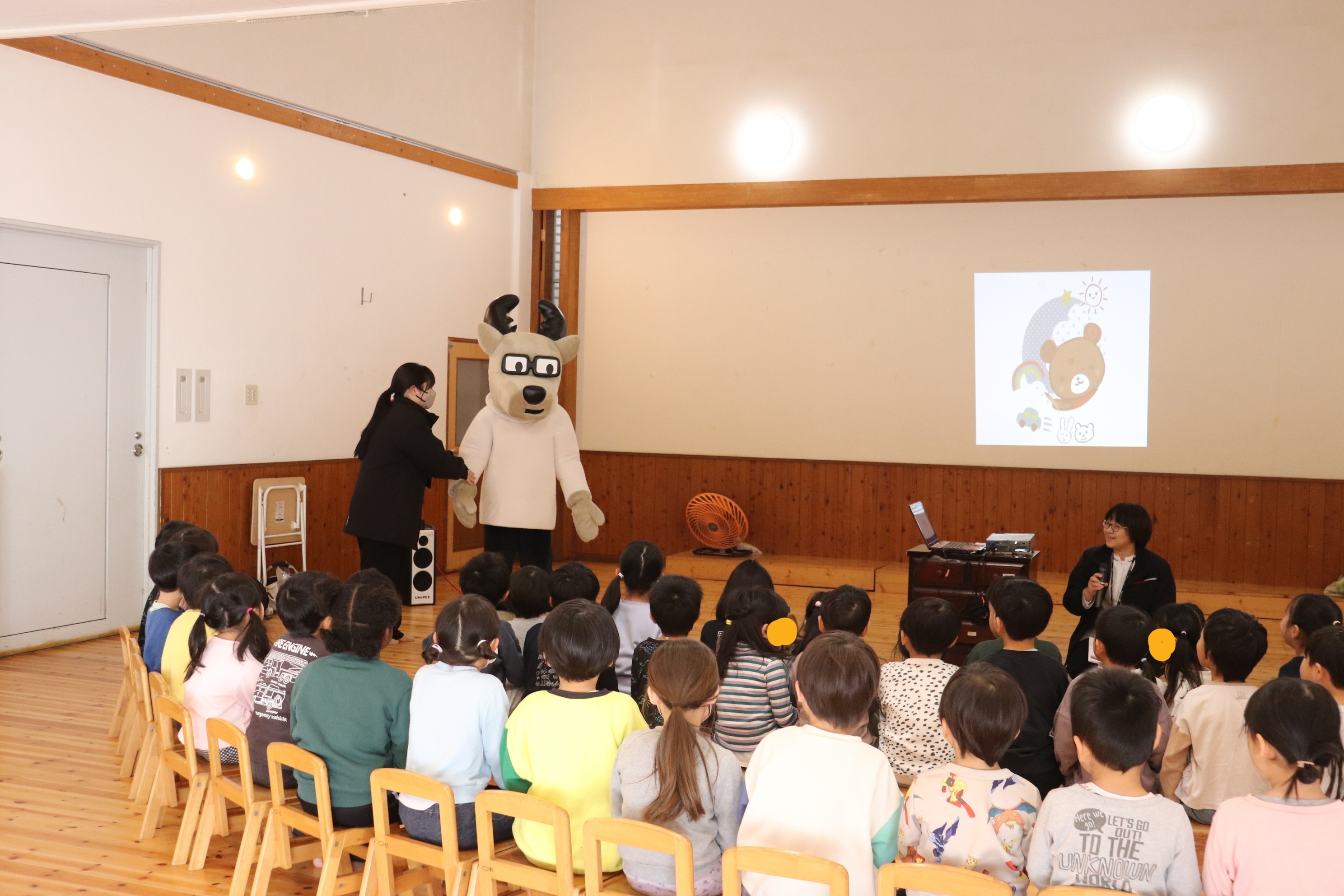 カクシカくんと一緒に動画鑑賞、クイズ大会を行い、実際にコペンを使って車から確認しづらい場所があることを園児の皆様に体感して頂きました!