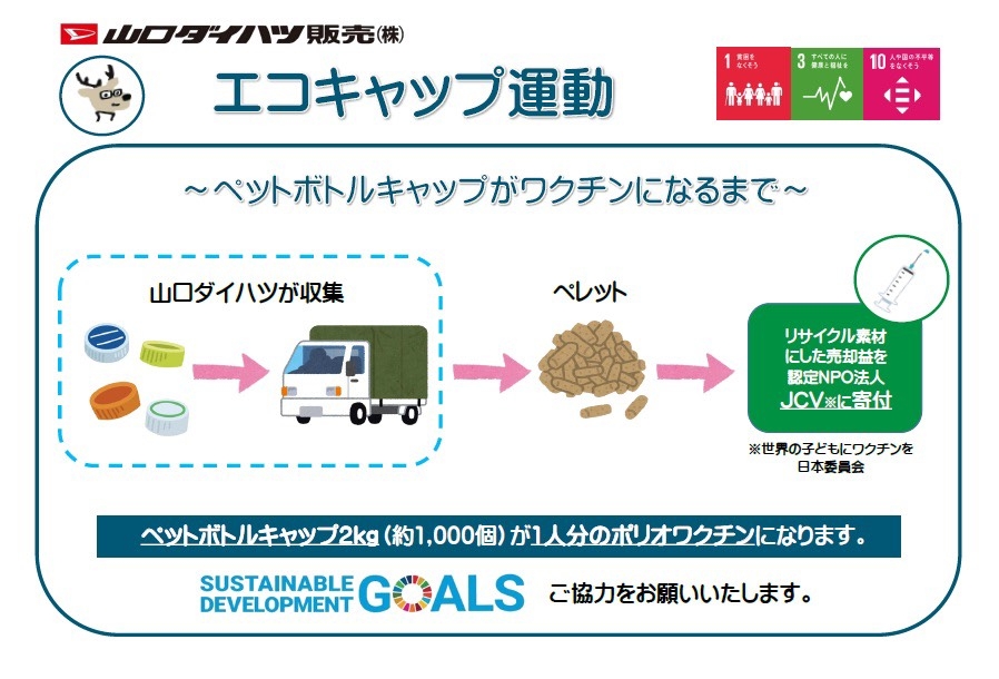 かねてより山口ダイハツではSDG'sの一環として、エコキャップ運動を実施してきました☺️