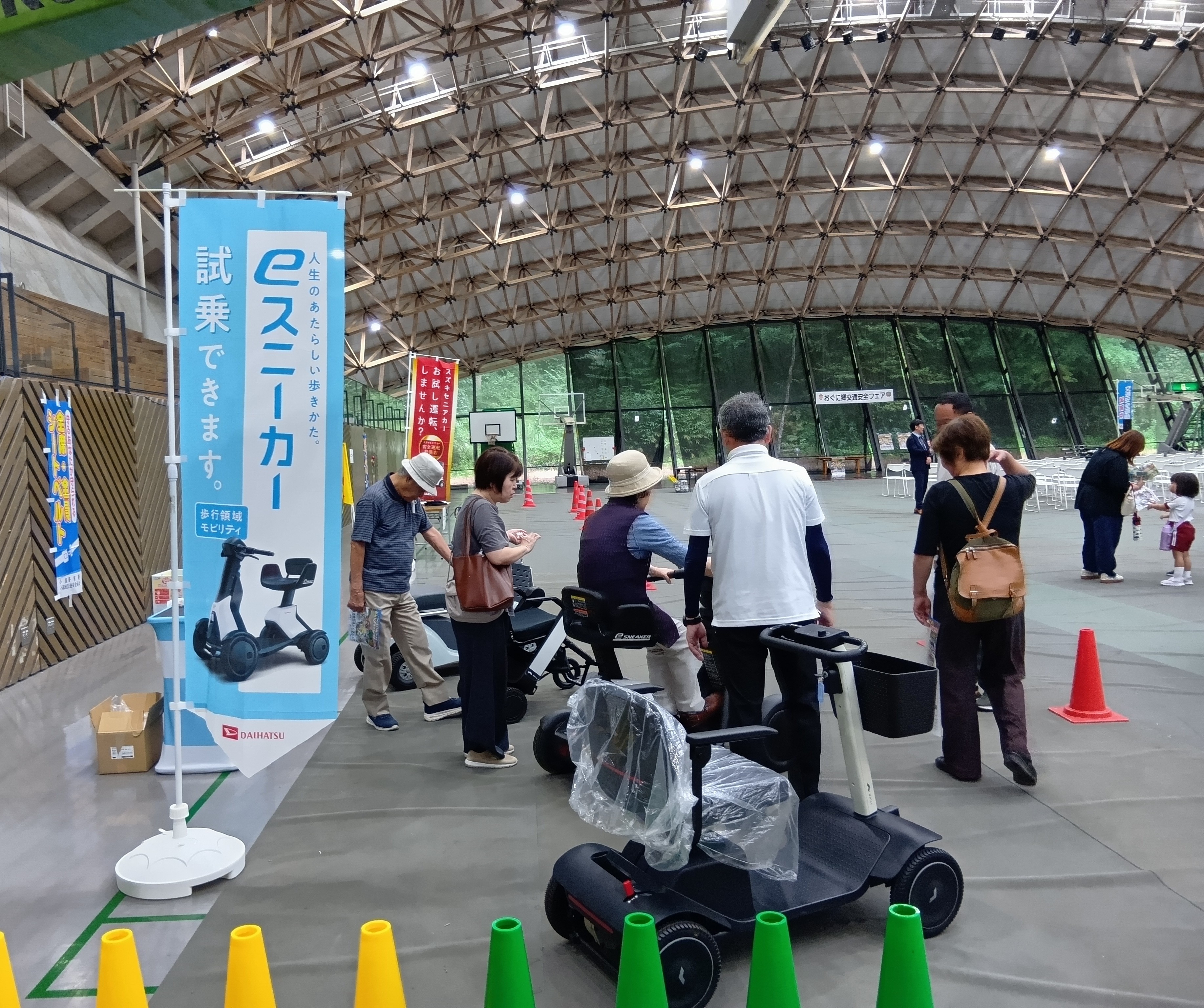 2025年9月23日小国警察署と小国地区交通安全協会主催で「秋の全国交通安全運動」の一環として、小国ドームにて開催されました。室内ではVR体験・歩行者横断シュミレーター・反射材効果体験テント・高齢者体験・酒酔い体験・自転車安全運転教室・シニアカー試乗体験等が行われ、室外ではシートベルト衝撃体験・サポカー体験・パトカー/白バイ展示等が行われました。熊本ダイハツはサポカー体験/シニアカー試乗体験に参加協力させていただきました。