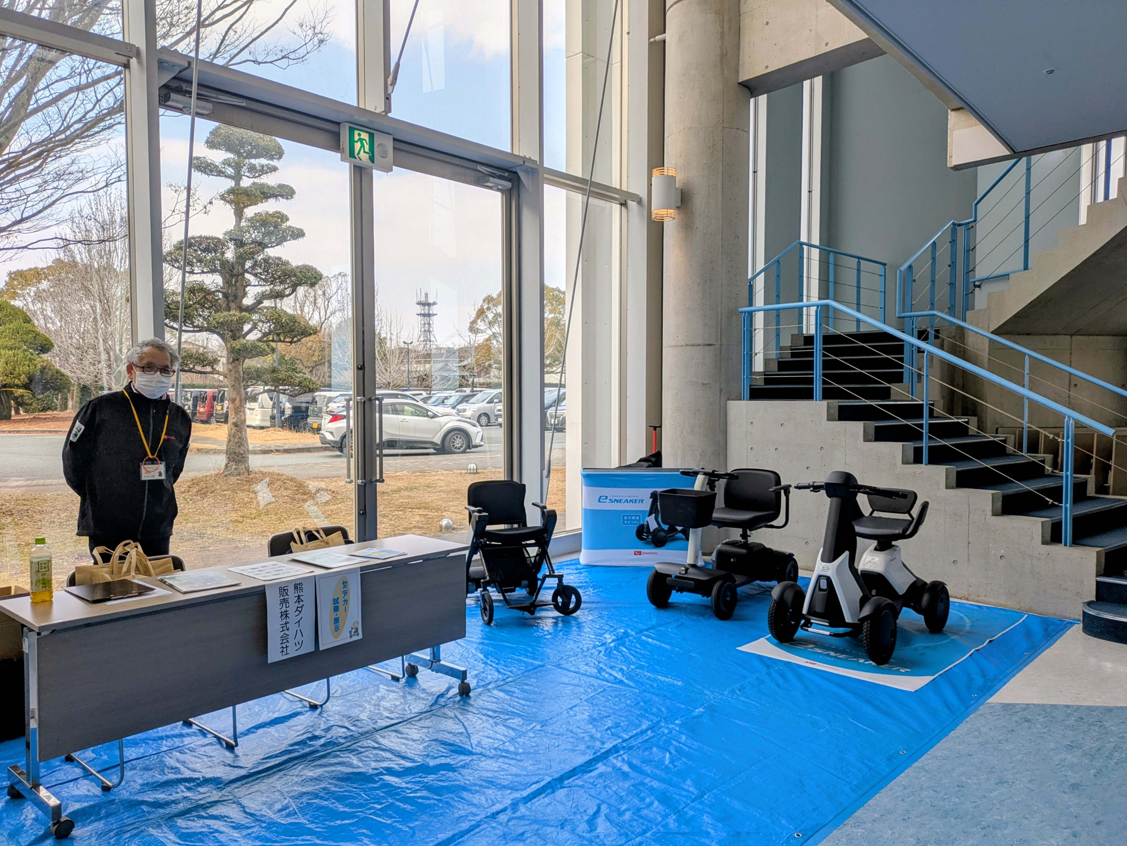 令和8年2月1日:「認知症になっても安心して暮らすことができる地域(まち)づくり」を目指し、宇城市では「認知症市民フォーラムinうき」を開催され、当日は映画上映・基調講演やロビー展示及び体験コーナー等に350名を超える参加があり、熊本ダイハツも歩行領域モビリティ「e-SNEAKER & WHILL」の展示/体験試乗に参加しました。
