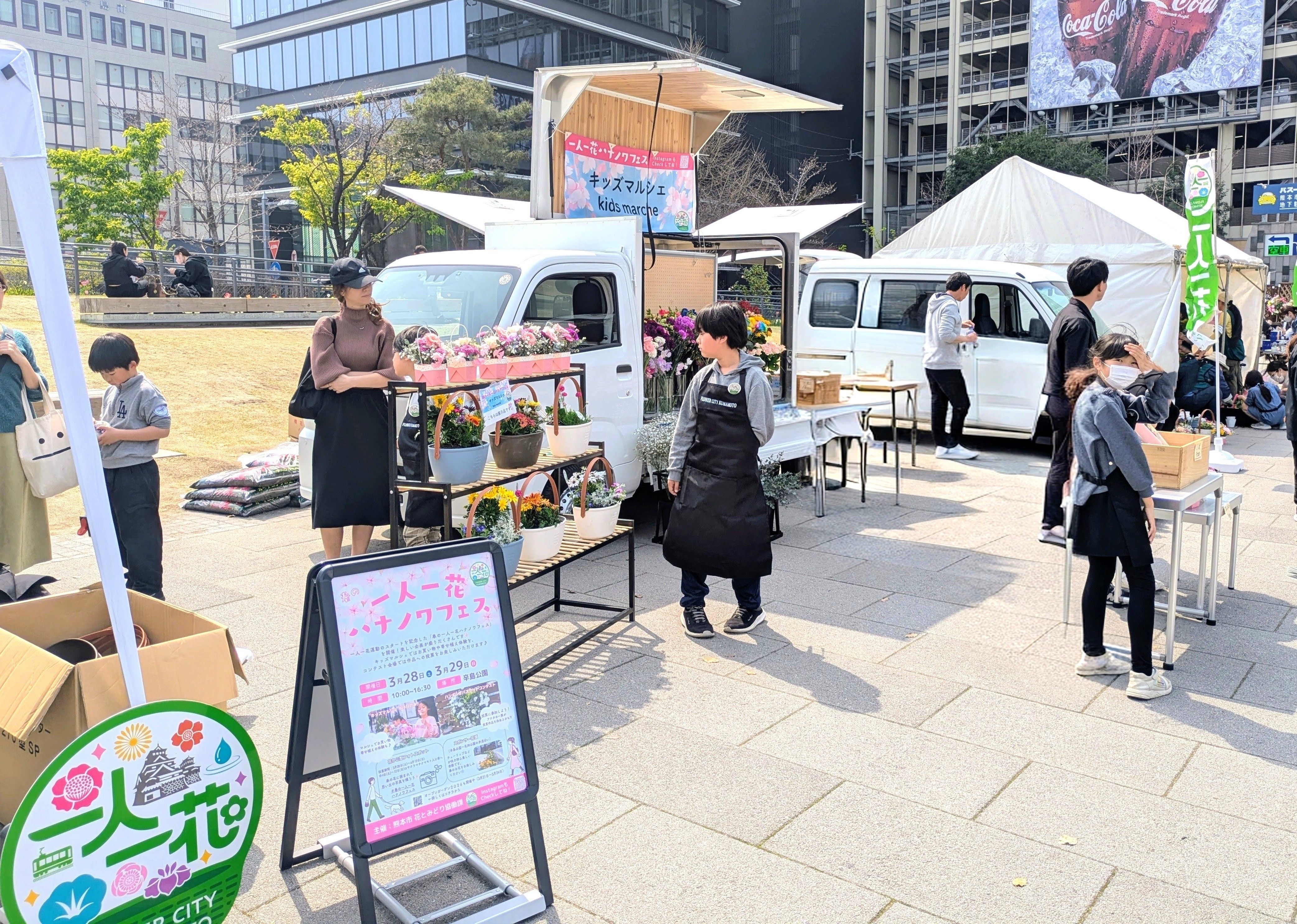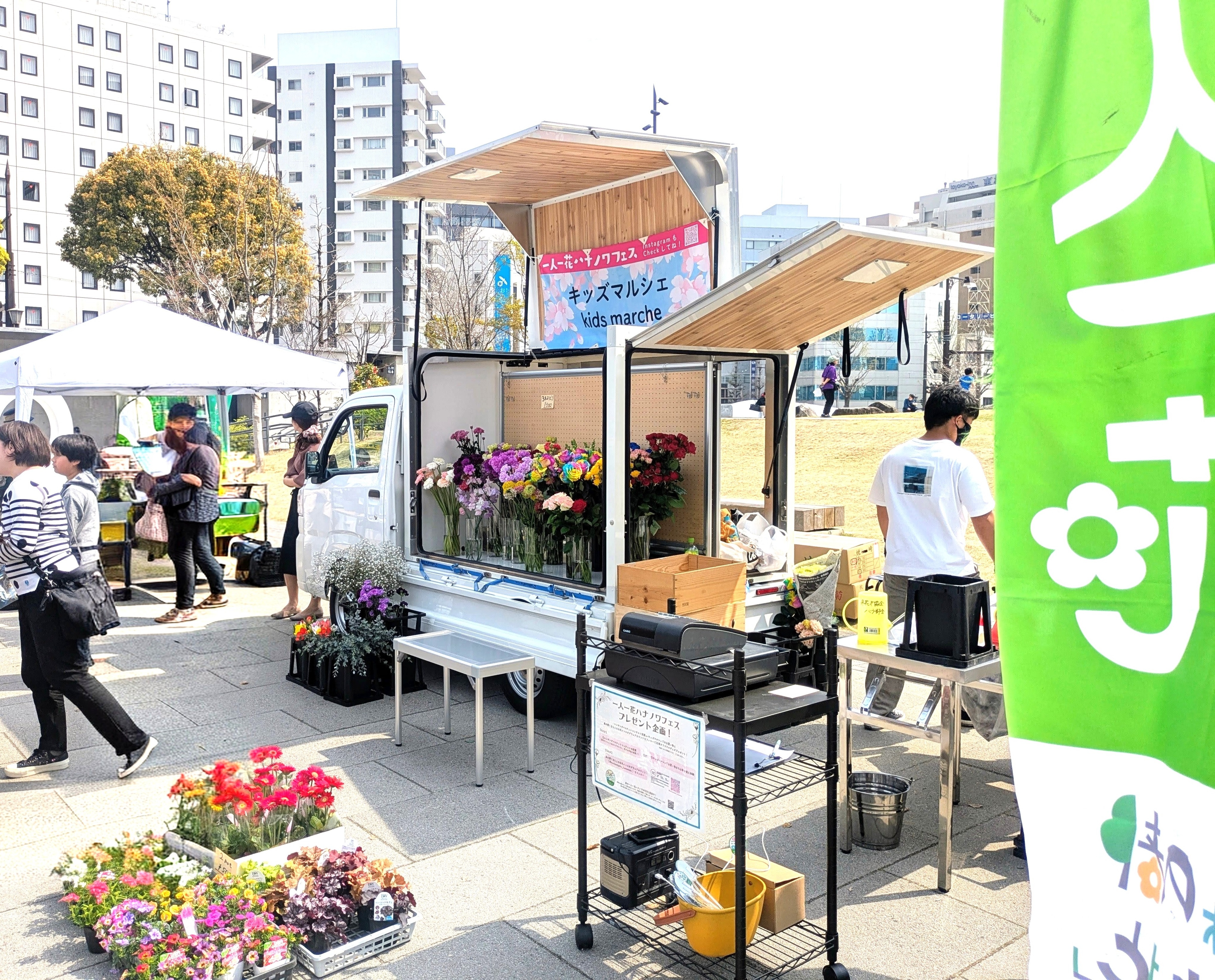 2026年3月28日熊本市辛島公園にて、一人一花運動のスタートを記念した「春の一人一花ハナノワフェス」が開催され、(株)都市技術設計コンサルタント様がNibakoをご利用されてキッズマルシェに参加されました!
