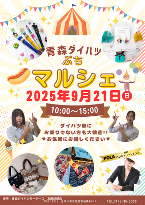 お客様と地域の生産者の方とのふれあいの場を提供するため、「ダイハツマルシェ(市場)」を開催。地元のこだわり食材や商品を多くの方に知っていただくことで、地域活性化につなげたいと思います。